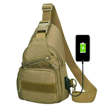 Luya Sac de poitrine tactique d'extérieur en nylon durable de grande capacité pour hommes Sac à bandoulière de sport à chargement USB