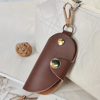 Tas penyimpanan kunci kulit sapi asli, tempat kunci mobil multifungsi ritsleting lapisan pertama tahan air buatan tangan